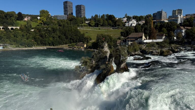 Nach einem improvisierten Frühstück fahren wir in Zürich los und landen bald mal auf der Autobahn in Richtung St. Gallen, aber nicht für lange. In Andelfingen fahren wir über eine alte Holzbrücke und bewundern in Marthalen die Riegelhäuser. Dann treffen wir beim Rheinfall ein und freuen uns über die Gratistickets für Gabi und mich. Durch den Torbogen im Turm gelangen wir ins Schloss Laufen. Hier [Weiterlesen]